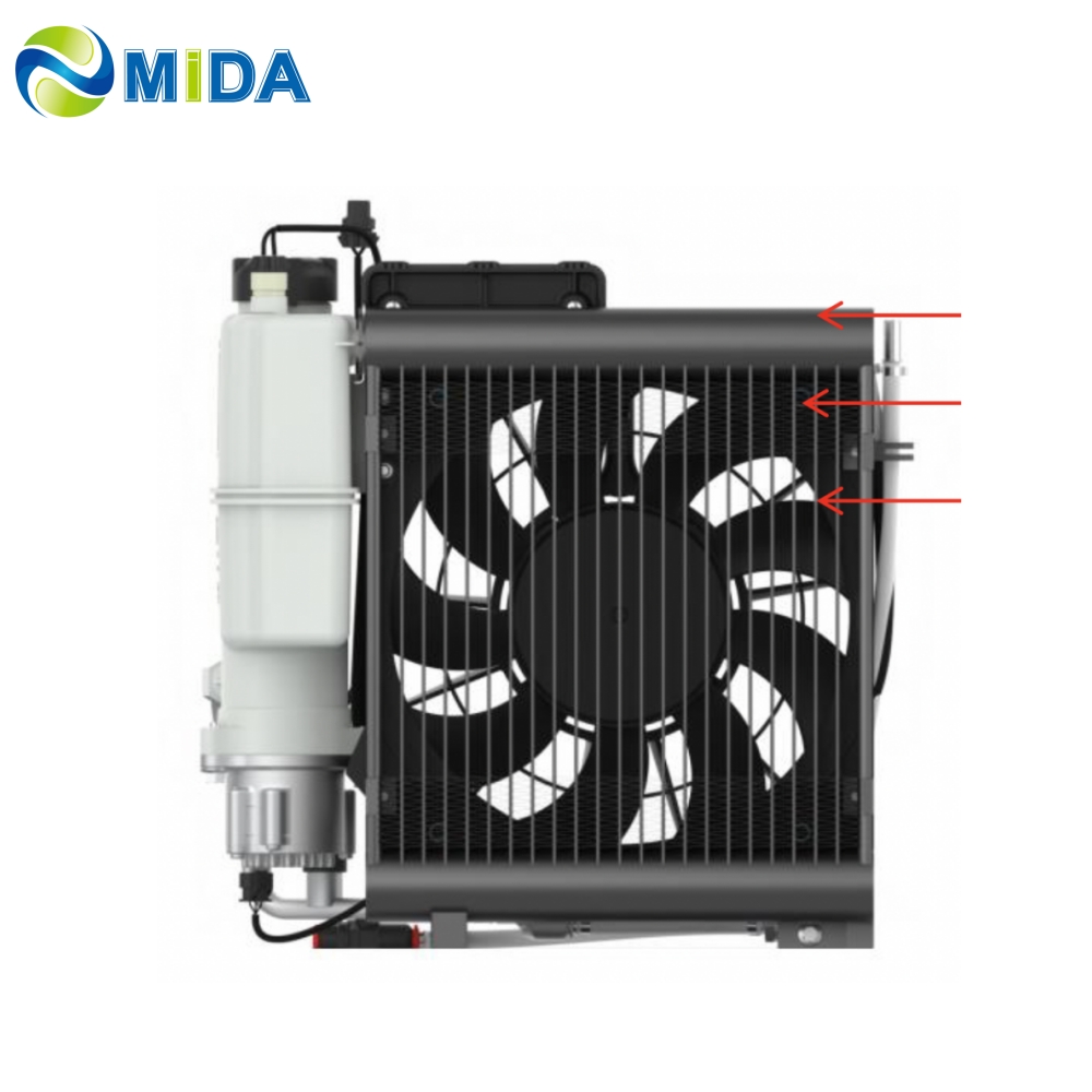 Chladicí modul HPC (TD8125010-XC01001) se používá pro inteligentní technologii vysokovýkonného nabíjení (HPC). Vyzařovací výkon je 3 kW, nabíjecí proud může dosáhnout 500–800 A (při okolní teplotě 50 °C) a zajišťuje bezpečný a stabilní provoz vedení vysokovýkonné nabíjecí pistole. Základní technologií produktu je dodávat chladivo s vhodnou teplotou a průtokem do vedení vysokovýkonné nabíjecí pistole za všech provozních podmínek, aby se zajistilo, že nárůst teploty vedení vysokovýkonné nabíjecí pistole vzhledem k okolní teplotě během procesu nabíjení nepřekročí 50 K (ΔTmax = 50 K).