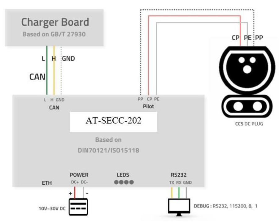 SECC - зарядлагыч өчен тулы үзенчәлекле зарядлы элемтә конвертеры, ул GB / T стандарт зарядлагычның CAN элемтә сигналын ISO15118 (EIM) һәм DIN70121 элемтә протокол стандартларына туры килгән PLC сигналына әйләндерә ала.